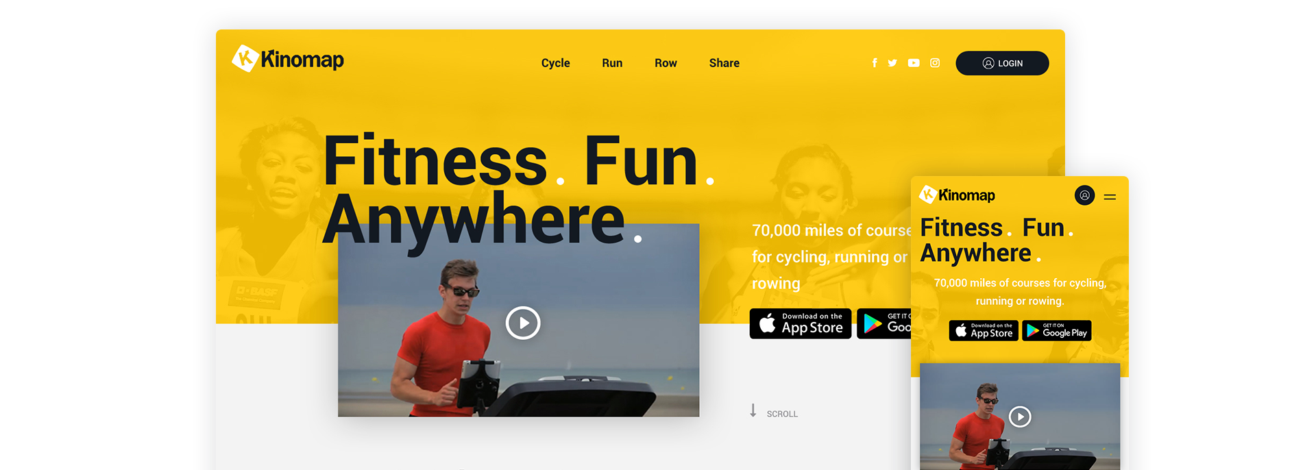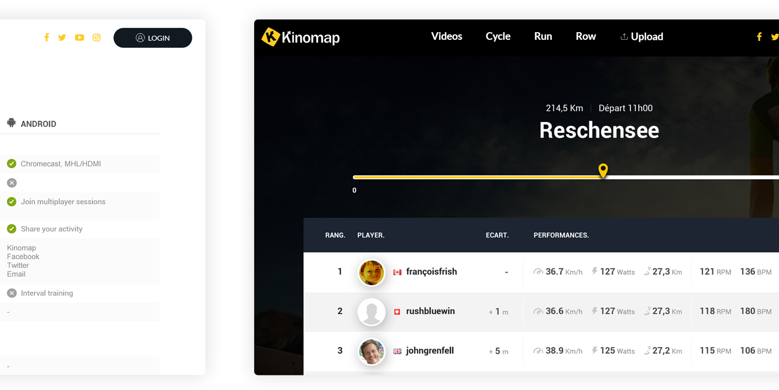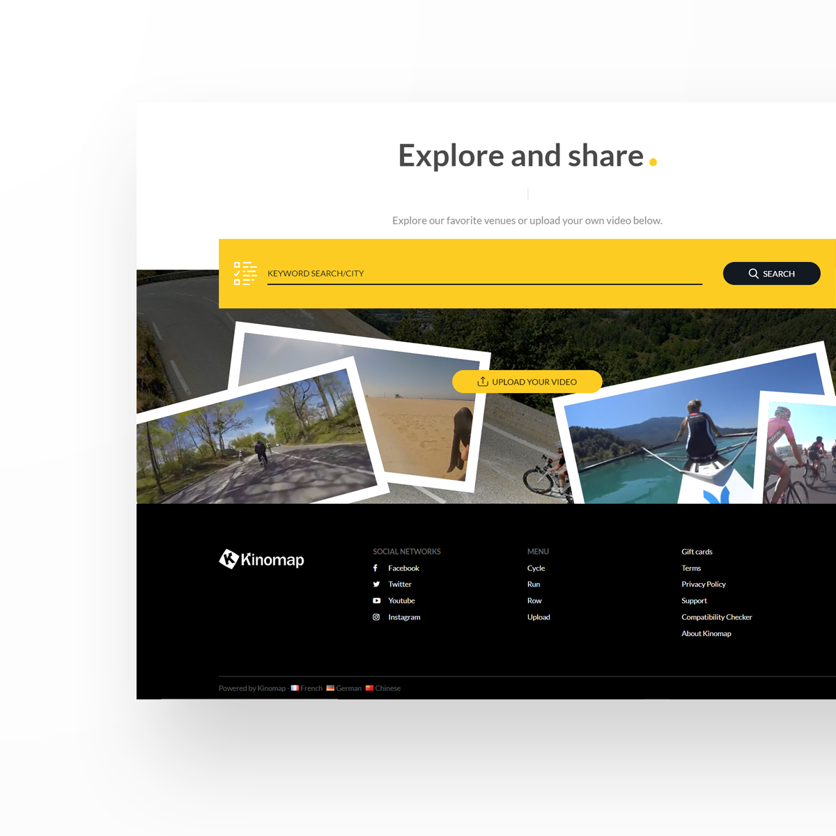 Kinomap, leader mondial de la vidéo géolocalisée, propose de s'entraîner de chez soi sur plus de 190 000km dans le monde. Le site internet a fait peau neuve afin de proposer un catalogue de vidéos en ligne et de mettre en lumière les fonctionnalités de son application.